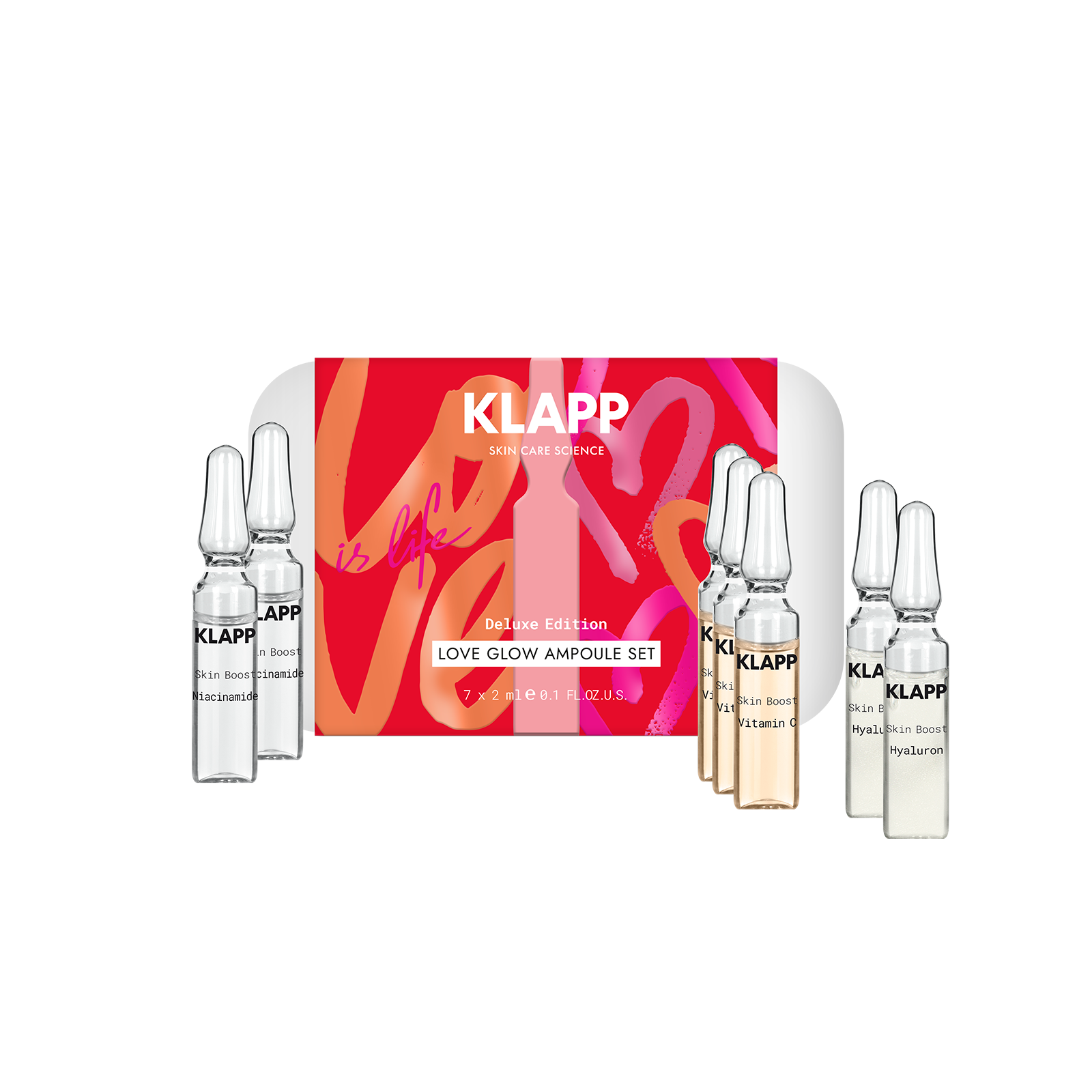 Skin Boost Hyaluron: AQUA/WATER/EAU, PROPYLENE GLYCOL, ALOE BARBADENSIS LEAF JUICE, BETAINE, POLYGLYCERYL-10 LAURATE, CAESALPINIA SPINOSA GUM, SACCHARIDE ISOMERATE, SODIUM PCA, FRAGRANCE (PARFUM), SORBITOL, BUTYLENE GLYCOL, ALCOHOL, SODIUM LEVULINATE, SODIUM HYALURONATE, SODIUM LACTATE, PROPANEDIOL, PANTHENOL, POTASSIUM SORBATE, PCA, CALCIUM ALUMINUM BOROSILICATE, ALPINIA GALANGA EXTRACT, PENTYLENE GLYCOL, SODIUM BENZOATE, BENZOTRIAZOLYL DODECYL P-CRESOL, SODIUM POLYGLUTAMATE, MALTODEXTRIN, SODIUM PHYTATE, SERINE, SODIUM HYDROXIDE, TITANIUM DIOXIDE, ALANINE, CITRIC ACID,GLYCINE, GLUTAMIC ACID, LYSINE HCL, THREONINE, ARGININE, CAPRYLIC/CAPRIC TRIGLYCERIDE, XANTHAN GUM, SILICA, WINE, SODIUM CITRATE, PINUS SYLVESTRIS BARK EXTRACT, RIBES NIGRUM (BLACK CURRANT) LEAF EXTRACT, PROLINE, TIN OXIDE